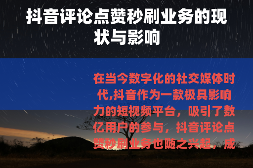 在当今数字化的社交媒体时代,抖音作为一款极具影响力的短视频平台,吸引了数亿用户的参与,抖音评论点赞秒刷业务也随之兴起,成为了一个备受关注的现象。