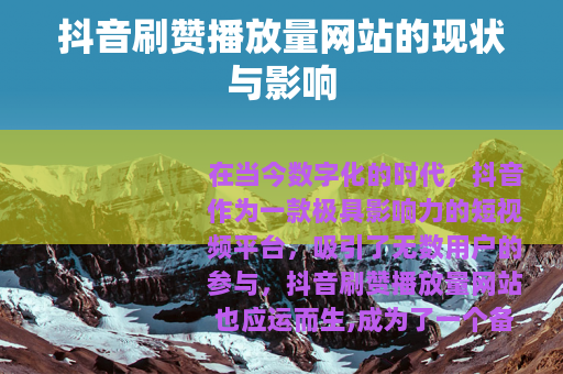 在当今数字化的时代,抖音作为一款极具影响力的短视频平台,吸引了无数用户的参与,抖音刷赞播放量网站也应运而生,成为了一个备受关注的现象。