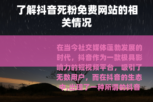 在当今社交媒体蓬勃发展的时代,抖音作为一款极具影响力的短视频平台,吸引了无数用户,而在抖音的生态中,出现了一种所谓的抖音死粉免费网站的现象。
