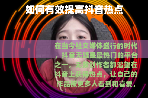 在当今社交媒体盛行的时代,抖音无疑是最热门的平台之一,无数创作者都渴望在抖音上获得热点,让自己的作品被更多人看到和喜爱,如何提高抖音热点呢?以下是一些实用的方法。 质量是关键,要确保你的视频内容具有独特性、趣味性和价值性,独特的内容能够吸引用户的注意力,让他们在众多视频中眼前一亮,你可以分享一些小众但有趣的爱好、独特的生活经历或新颖的观点,趣味性则能让用户在观看视频时感到愉悦,从而更愿意停留和互动,价值性也非常重要,无论是提供知识、技能还是情感上的共鸣,都能让用户觉得观看你的视频是有收获的。