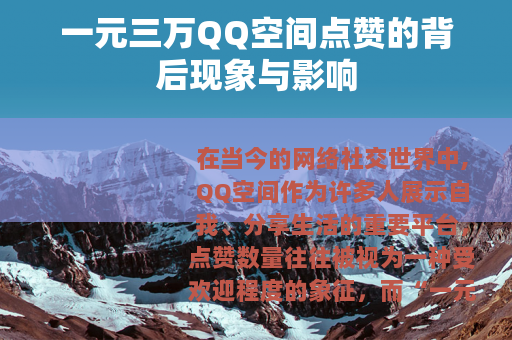 在当今的网络社交世界中,QQ空间作为许多人展示自我、分享生活的重要平台,点赞数量往往被视为一种受欢迎程度的象征,而“一元三万QQ空间点赞”这样的现象也随之悄然兴起,引发了一系列值得关注的话题。