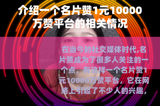 在当今的社交媒体时代,名片赞成为了很多人关注的一个点,有这样一个名片赞1元10000万赞平台,它在网络上引起了不少人的兴趣。