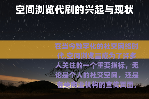 在当今数字化的社交网络时代,空间浏览量成为了许多人关注的一个重要指标,无论是个人的社交空间,还是各类商业机构的宣传页面,较高的浏览量往往意味着更多的关注和可能的机会,空间浏览代刷这一现象应运而生,并在网络世界中逐渐形成了一定的规模。