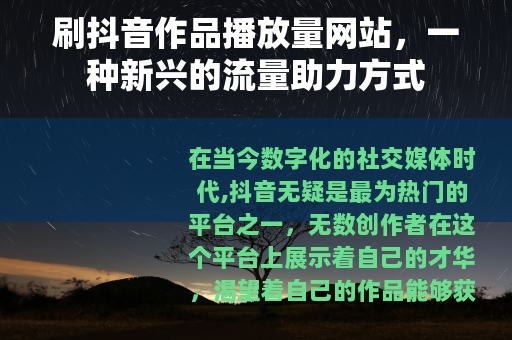 在当今数字化的社交媒体时代,抖音无疑是最为热门的平台之一,无数创作者在这个平台上展示着自己的才华,渴望着自己的作品能够获得更多的关注和播放量,而刷抖音作品播放量网站也随之应运而生,成为了许多创作者关注的焦点。