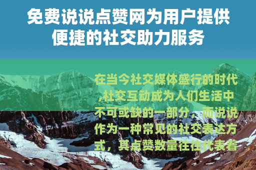 在当今社交媒体盛行的时代,社交互动成为人们生活中不可或缺的一部分,而说说作为一种常见的社交表达方式,其点赞数量往往代表着一定的人气和关注度,在这样的背景下,免费说说点赞网应运而生,为广大用户带来了全新的社交体验。