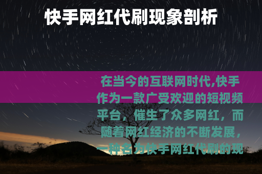 在当今的互联网时代,快手作为一款广受欢迎的短视频平台,催生了众多网红,而随着网红经济的不断发展,一种名为快手网红代刷的现象也逐渐兴起。