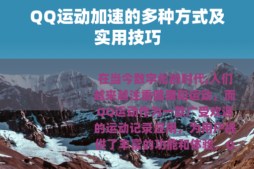 在当今数字化的时代,人们越来越注重健康和运动,而QQ运动作为一款广受欢迎的运动记录应用,为用户提供了丰富的功能和体验,QQ运动加速功能备受关注,它能让用户在虚拟的运动世界里更快速地达成目标,增添运动的乐趣和成就感。