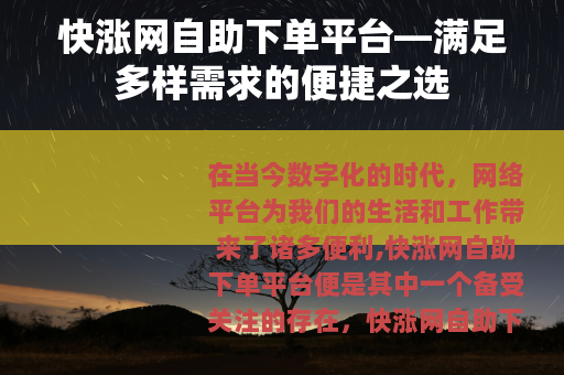 在当今数字化的时代,网络平台为我们的生活和工作带来了诸多便利,快涨网自助下单平台便是其中一个备受关注的存在。