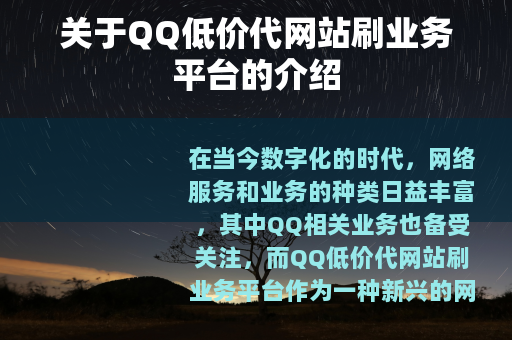 在当今数字化的时代,网络服务和业务的种类日益丰富,其中QQ相关业务也备受关注,而QQ低价代网站刷业务平台作为一种新兴的网络服务模式,逐渐进入了大众的视野。