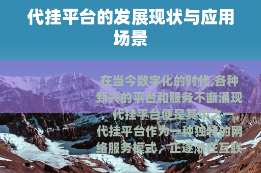 代挂平台作为一种新兴的网络服务模式,在满足人们对于在线账户管理的需求方面具有巨大的潜力和优势,它为用户提供了便捷高效的账户管理解决方案,在商业和个人领域都有着广泛的应用前景,随着技术的不断进步和市场的不断成熟,相信代挂平台将会不断完善和发展,为人们的生活和工作带来更多的便利和价值,在未来,我们有理由期待代挂平台能够在互联网的舞台上绽放出更加耀眼的光芒,成为人们数字生活中不可或缺的一部分。
