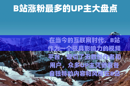 在当今的互联网时代,B站作为一个极具影响力的视频平台,吸引了无数创作者和用户,众多UP主凭借着各自独特的内容和风格在B站上收获了大量粉丝,那么究竟谁是B站涨粉最多的UP主呢?