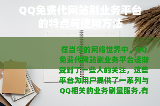 在当今的网络世界中,QQ免费代网站刷业务平台逐渐受到了一些人的关注,这些平台为用户提供了一系列与QQ相关的业务刷量服务,有着其独特的运作模式和特点。