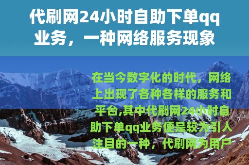 在当今数字化的时代,网络上出现了各种各样的服务和平台,其中代刷网24小时自助下单qq业务便是较为引人注目的一种。