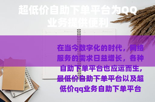 在当今数字化的时代,网络服务的需求日益增长,各种自助下单平台也应运而生,最低价自助下单平台以及超低价qq业务自助下单平台受到了不少人的关注。