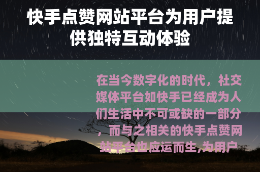 在当今数字化的时代,社交媒体平台如快手已经成为人们生活中不可或缺的一部分,而与之相关的快手点赞网站平台也应运而生,为用户带来了新的互动方式和乐趣。