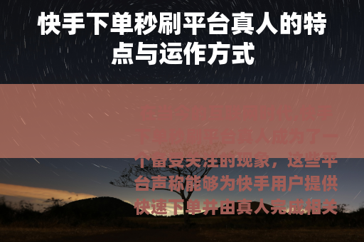 在当今的互联网时代,快手下单秒刷平台真人成为了一个备受关注的现象,这些平台声称能够为快手用户提供快速下单并由真人完成相关操作的服务,在一定程度上满足了部分用户对于数据增长等方面的需求。