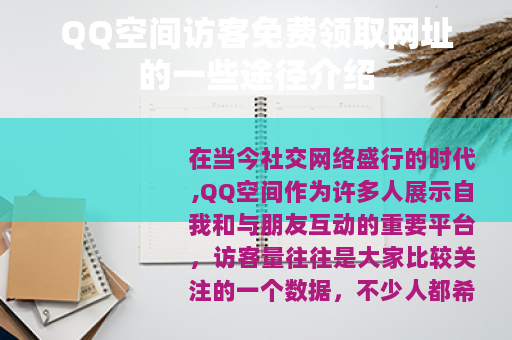 在当今社交网络盛行的时代,QQ空间作为许多人展示自我和与朋友互动的重要平台,访客量往往是大家比较关注的一个数据,不少人都希望能够增加自己QQ空间的访客数量,而免费领取相关服务的网址也因此受到了一定的关注。