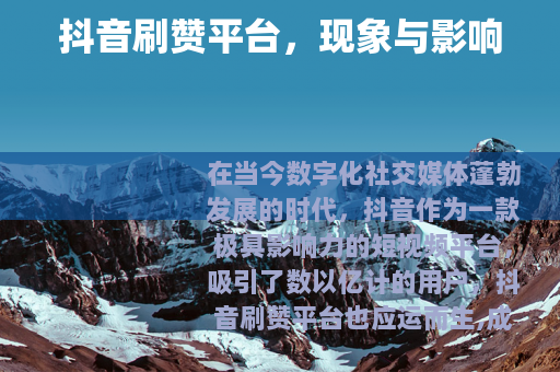 在当今数字化社交媒体蓬勃发展的时代,抖音作为一款极具影响力的短视频平台,吸引了数以亿计的用户,抖音刷赞平台也应运而生,成为了一个备受关注的话题。
