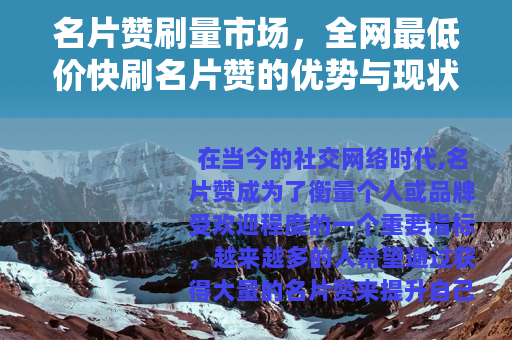 在当今的社交网络时代,名片赞成为了衡量个人或品牌受欢迎程度的一个重要指标,越来越多的人希望通过获得大量的名片赞来提升自己的社交影响力和知名度,而全网最低价快刷名片赞的服务也应运而生,在市场上引起了不小的波澜。