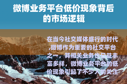 在当今社交媒体盛行的时代,微博作为重要的社交平台之一,其相关业务也日益丰富多样,微博业务平台的低价现象引起了不少人的关注。