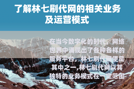在当今数字化的时代,网络世界中涌现出了各种各样的服务平台,林七刷代网便是其中之一,林七刷代网以其独特的业务模式在一定范围内受到了关注。