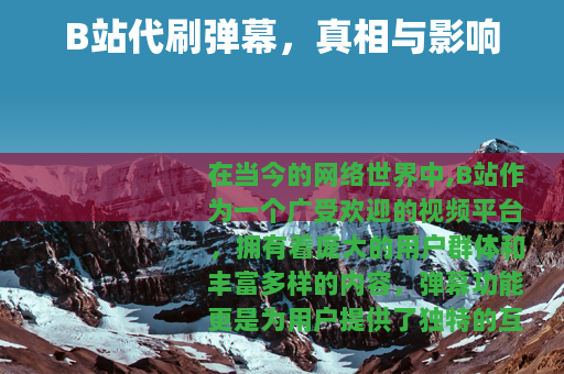随着B站的不断发展,一种名为“B站代刷弹幕”的现象逐渐兴起,一些人或机构声称可以通过技术手段为B站视频快速增加大量的弹幕,从而提升视频的热度和关注度,这看似是一种能够帮助视频创作者快速获得流量和曝光的捷径,但实际上却存在着诸多问题。