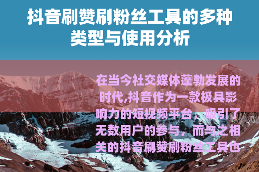 在当今社交媒体蓬勃发展的时代,抖音作为一款极具影响力的短视频平台,吸引了无数用户的参与,而与之相关的抖音刷赞刷粉丝工具也逐渐进入了人们的视野。