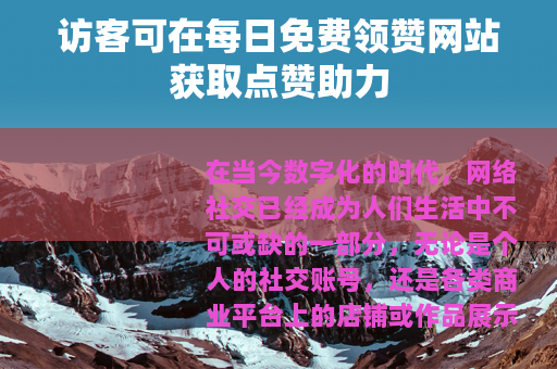 在当今数字化的时代,网络社交已经成为人们生活中不可或缺的一部分,无论是个人的社交账号,还是各类商业平台上的店铺或作品展示,点赞数量往往在一定程度上代表着受欢迎程度和影响力,而每日免费领赞网站的出现,为众多访客提供了一个获取点赞的新途径。
