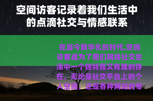 空间访客的存在,也让我们更加注重自己在网络空间中的形象和表达,我们会精心挑选发布的内容,希望能够展现出自己最好的一面,给访客留下一个良好的印象,每一条动态、每一张照片,都像是我们向外界递出的一张名片,吸引着更多的人来了解我们,我们也会通过访客的反馈,不断调整自己的表达方式和分享内容,让自己的空间更加丰富多彩,更具吸引力。