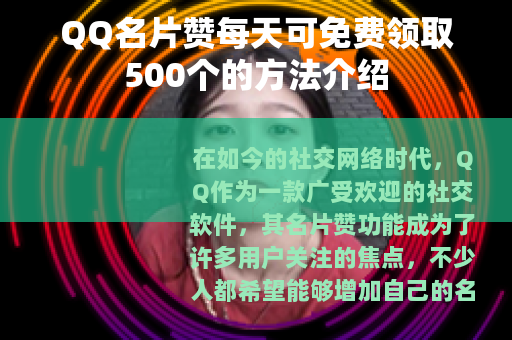 对于那些想要增加自己QQ名片赞数量的用户来说,这种每天免费领取500个的机会是非常有吸引力的,它不仅可以让你的名片在众多好友中更加突出,还能在一定程度上满足你在社交方面的虚荣心,想象一下,当你的名片赞数量不断攀升,在好友列表中名列前茅时,那种成就感是不言而喻的。