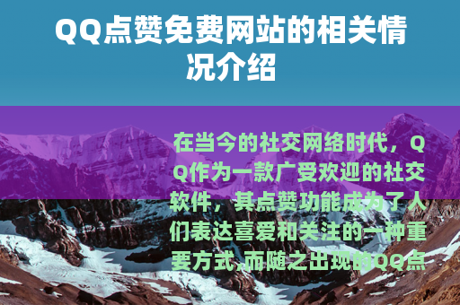 在当今的社交网络时代,QQ作为一款广受欢迎的社交软件,其点赞功能成为了人们表达喜爱和关注的一种重要方式,而随之出现的QQ点赞免费网站也引起了不少用户的兴趣。
