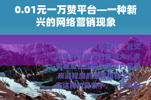 在当今数字化的时代,社交媒体的影响力日益强大,点赞数量往往成为衡量内容受欢迎程度的重要指标之一,在这样的背景下,一种声称只需0.01元就能获得一万赞的平台悄然兴起,引发了广泛的关注和讨论。