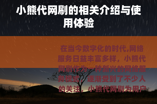 在当今数字化的时代,网络服务日益丰富多样,小熊代网刷作为一种新兴的网络服务模式,逐渐受到了不少人的关注。