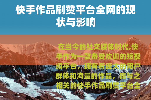 在当今的社交媒体时代,快手作为一款备受欢迎的短视频平台,拥有着庞大的用户群体和海量的作品,而与之相关的快手作品刷赞平台全网也应运而生,成为了一个引人关注的现象。