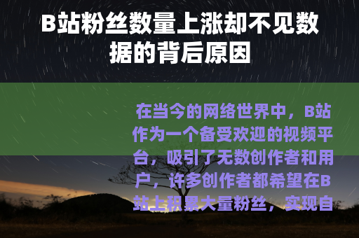 在当今的网络世界中,B站作为一个备受欢迎的视频平台,吸引了无数创作者和用户,许多创作者都希望在B站上积累大量粉丝,实现自己的创作价值,有些创作者会遇到这样一个奇怪的现象:明明看到自己的B站粉丝数量在不断上涨,可在数据分析中却看不到相应的数据体现,这究竟是为什么呢?