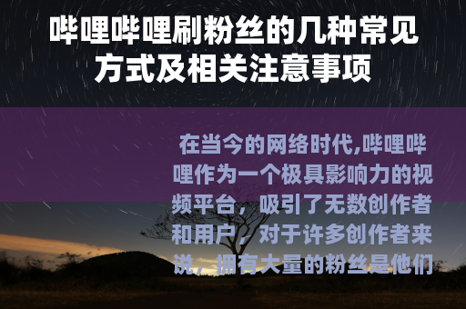 在当今的网络时代,哔哩哔哩作为一个极具影响力的视频平台,吸引了无数创作者和用户,对于许多创作者来说,拥有大量的粉丝是他们在平台上取得成功的重要标志之一,哔哩哔哩刷粉丝的话题也逐渐受到了关注。