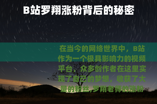 在当今的网络世界中,B站作为一个极具影响力的视频平台,众多创作者在这里实现了自己的梦想,收获了大量的粉丝,罗翔老师的涨粉历程备受瞩目。