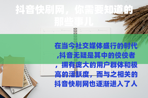 在当今社交媒体盛行的时代,抖音无疑是其中的佼佼者,拥有庞大的用户群体和极高的活跃度,而与之相关的抖音快刷网也逐渐进入了人们的视野。