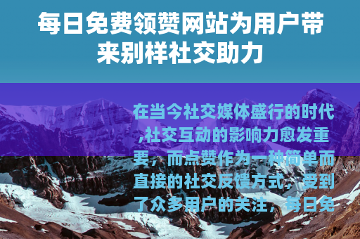 在当今社交媒体盛行的时代,社交互动的影响力愈发重要,而点赞作为一种简单而直接的社交反馈方式,受到了众多用户的关注,每日免费领赞网站便在这样的背景下应运而生,为用户提供了一个独特的社交助力平台。
