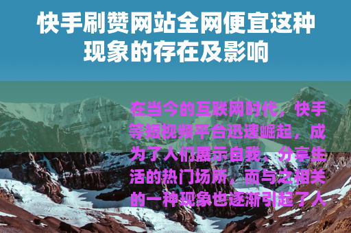 在当今的互联网时代,快手等短视频平台迅速崛起,成为了人们展示自我、分享生活的热门场所,而与之相关的一种现象也逐渐引起了人们的关注,那就是快手刷赞网站全网便宜的情况。
