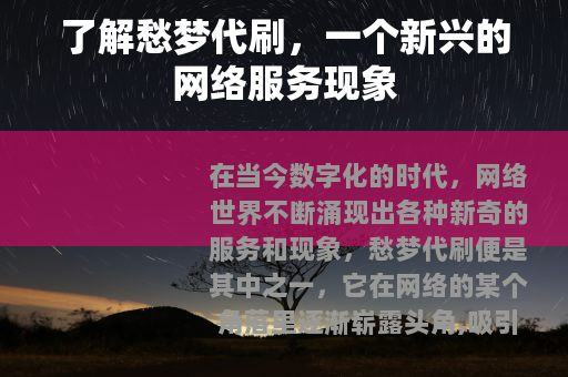 在当今数字化的时代,网络世界不断涌现出各种新奇的服务和现象,愁梦代刷便是其中之一,它在网络的某个角落里逐渐崭露头角,吸引了不少人的关注。