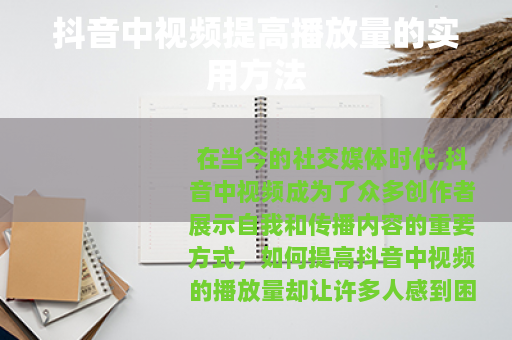 在当今的社交媒体时代,抖音中视频成为了众多创作者展示自我和传播内容的重要方式,如何提高抖音中视频的播放量却让许多人感到困惑,以下是一些有效的方法,可以帮助你在抖音中视频领域获得更多的关注和播放量。 质量是关键,确保你的中视频具有独特性和吸引力,能够在众多视频中脱颖而出,从选题开始就要精心策划,选择热门且受众感兴趣的话题,这样才能吸引更多用户的点击,在视频制作过程中,要注重画面的清晰度和稳定性,以及声音的质量,为观众提供良好的观看体验。
