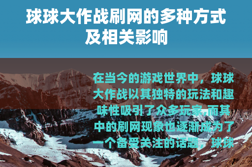 在当今的游戏世界中,球球大作战以其独特的玩法和趣味性吸引了众多玩家,而其中的刷网现象也逐渐成为了一个备受关注的话题。