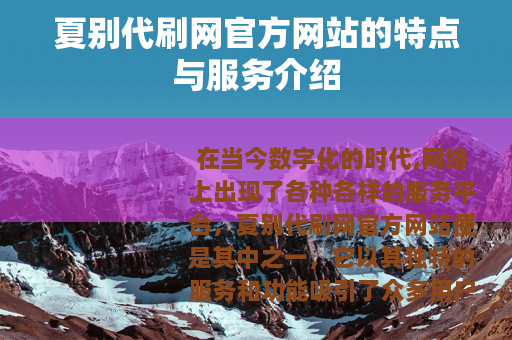 在当今数字化的时代,网络上出现了各种各样的服务平台,夏别代刷网官方网站便是其中之一,它以其独特的服务和功能吸引了众多用户的关注。