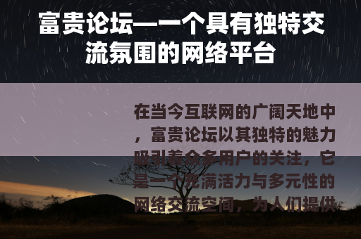 在当今互联网的广阔天地中,富贵论坛以其独特的魅力吸引着众多用户的关注,它是一个充满活力与多元性的网络交流空间,为人们提供了一个分享、学习和互动的平台。