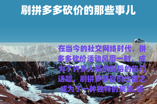 在当今的社交网络时代,拼多多砍价活动风靡一时,成为了许多人茶余饭后的热门话题,刷拼多多砍价也随之成为了一种独特的现象,吸引着众多用户参与其中。
