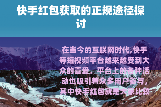 在当今的互联网时代,快手等短视频平台越来越受到大众的喜爱,平台上的各种活动也吸引着众多用户参与,其中快手红包就是大家比较关注的一个点。