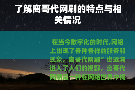 在当今数字化的时代,网络上出现了各种各样的服务和现象,离哥代网刷”也逐渐进入了人们的视野。