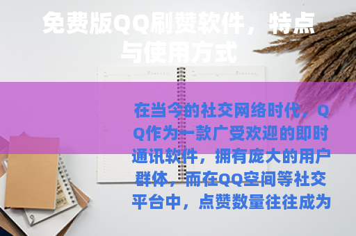 在当今的社交网络时代,QQ作为一款广受欢迎的即时通讯软件,拥有庞大的用户群体,而在QQ空间等社交平台中,点赞数量往往成为了衡量一条动态受欢迎程度的重要指标之一,免费版的QQ刷赞软件应运而生,为许多希望提升自己QQ空间热度的用户提供了一种可能的途径。