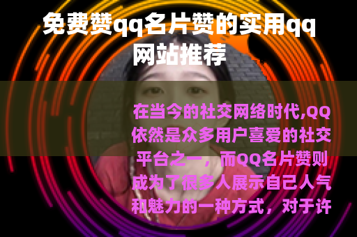 首先要介绍的是[网站名称1],这是一个非常受欢迎的免费赞QQ名片赞的网站,它的界面简洁明了,操作十分便捷,用户只需在网站上输入自己的QQ号码,就可以轻松开启免费赞之旅,该网站拥有庞大的用户群体,每天都有大量的用户在这里互相点赞,因此你不用担心点赞的数量不足,它的点赞速度也相当快,在你提交任务后,很快就能看到自己的名片赞数量不断增加。